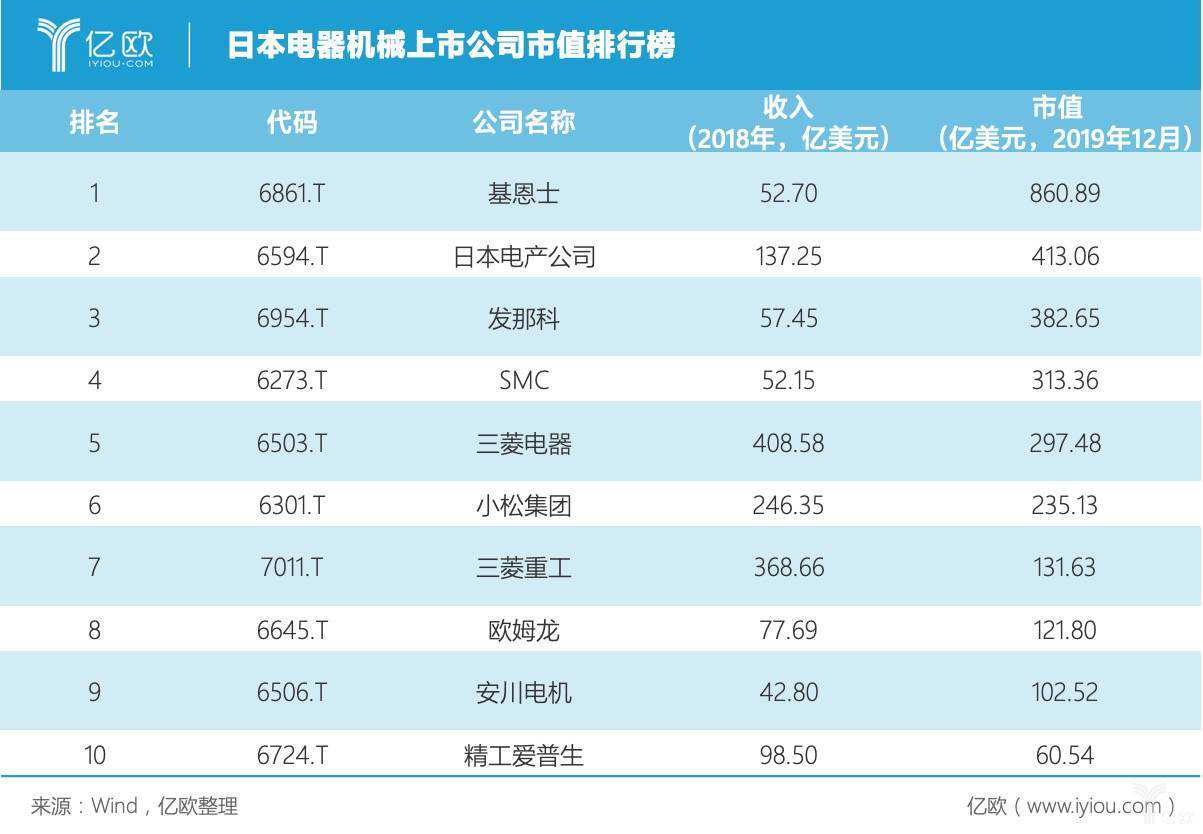 截至2019年12月,在日本上市电子机械企业中,安川电机市值排名第九,为102.52亿美元。