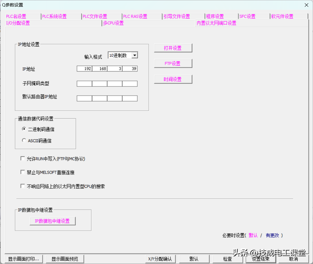 设置PLC内置以太网端口参数如下: