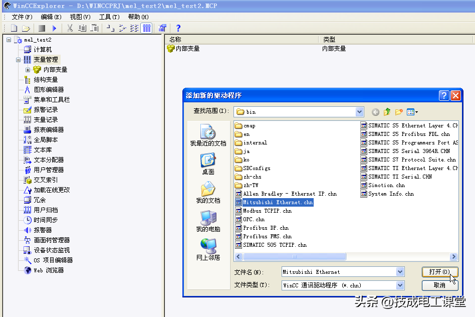 在WinCC项加载驱动“MitsubishiEthernet”: