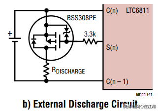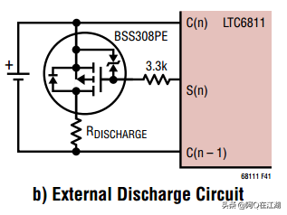 内部均衡与外部均衡LTC6811内部均衡电路官方推荐典型电路如下,由于均衡电流经过滤波电阻,所以通常滤波电阻不能选择太大,否则会导致均衡电流太小,使均衡功能打折扣。所以通常内部均衡应用的比较少。