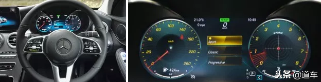比较重要的是它的内在,这次C200Avantgarde小改款取消了原本的传统指针式仪表板,改为全液晶化的仪表,它并不是采用了类似大哥E-Class和S-Class的那种类似把一块IPAD放在方向盘前面的仪表,而是依然保留了原本的仪表板双圆式造型的外框,只是里面的显示内容改为全液晶而已,并且可以更换Sport、Classic和Progressive三种主题模式。
