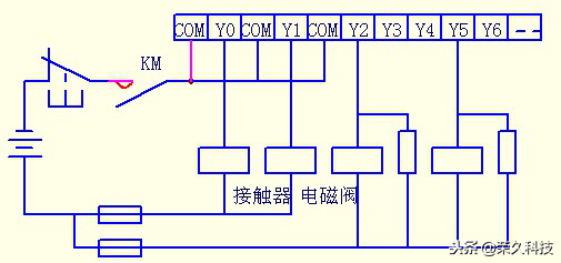 ②对继电器输出,第4点应使用一只5~15A的熔断器,对晶体管输出,第4点应使用一只1~2A的熔断器。