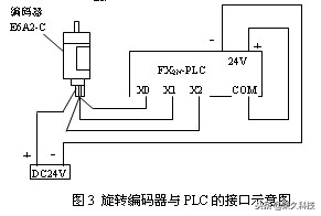 图3为FX2N型PLC与OMRON的E6A2-C系列旋转编码器的接口示意图。