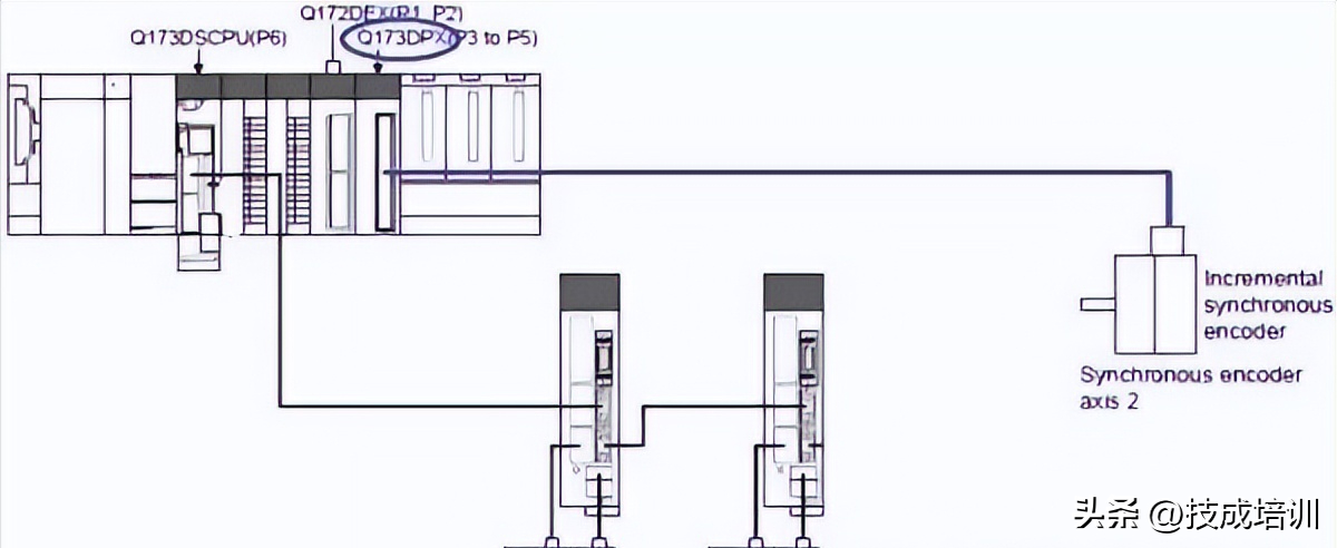 首先在如下图所示,外部同步编码器可以通过以下三种方式连接到三菱PLCQ172DSMotion的控制系统当中。通过外部连接的同步编码器的输入脉冲驱动输入轴,投入电源后就可以监控同步编码器的状态。
