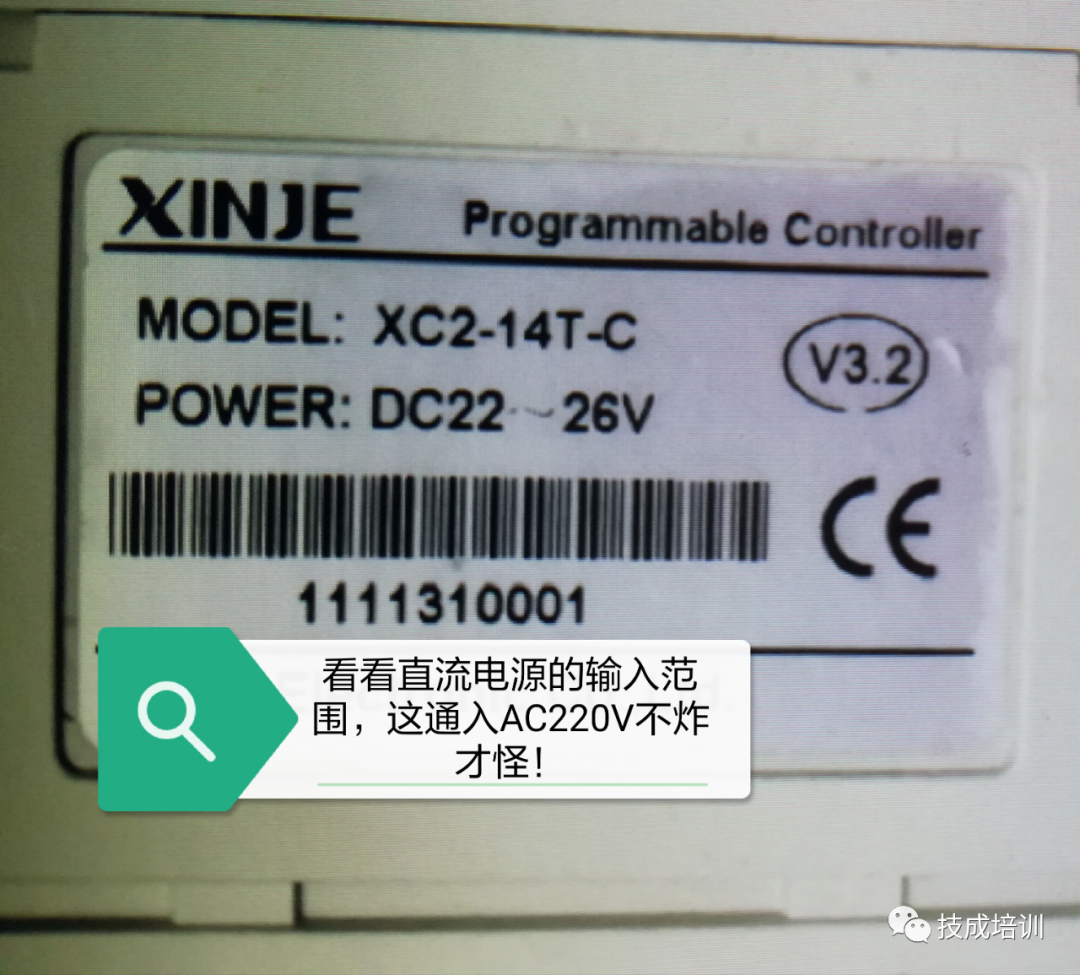 前两日该矿又为同行送来了一台该型设备,在询问过客户故障现象后,该同行一如既往的将市电电源线压到了PLC的电源输入端子上。由于以前每次检修过程均是如此,所以同行也没有检查核对,毕竟经常维修此设备已经熟的不能再熟了!可这一次意外就发生了,当他合上电源开关后,“嘭”随着一声爆响以及腾起的一团黑烟——PLC居然发生了爆炸??!