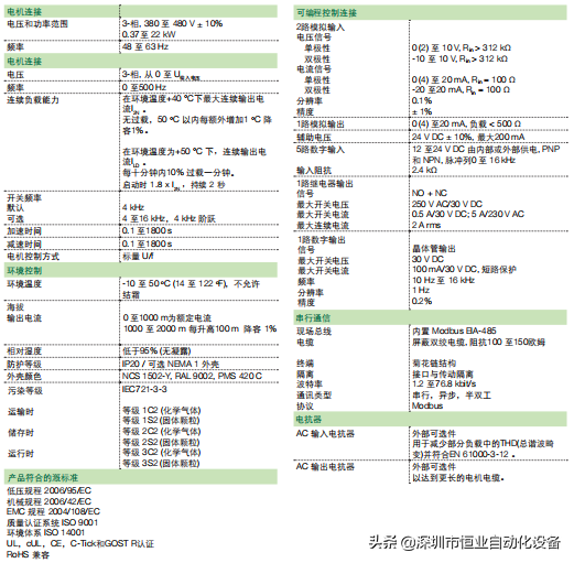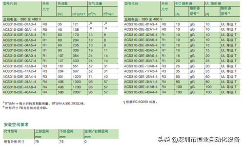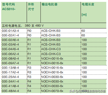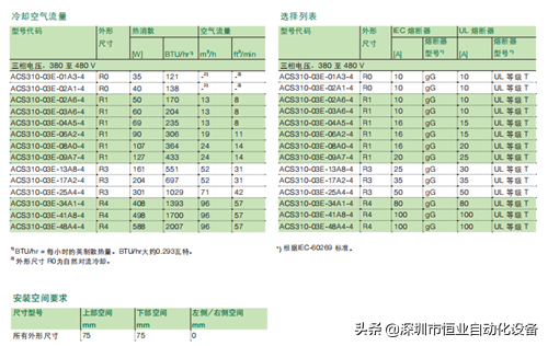 表三、ACS310系列的技术规格