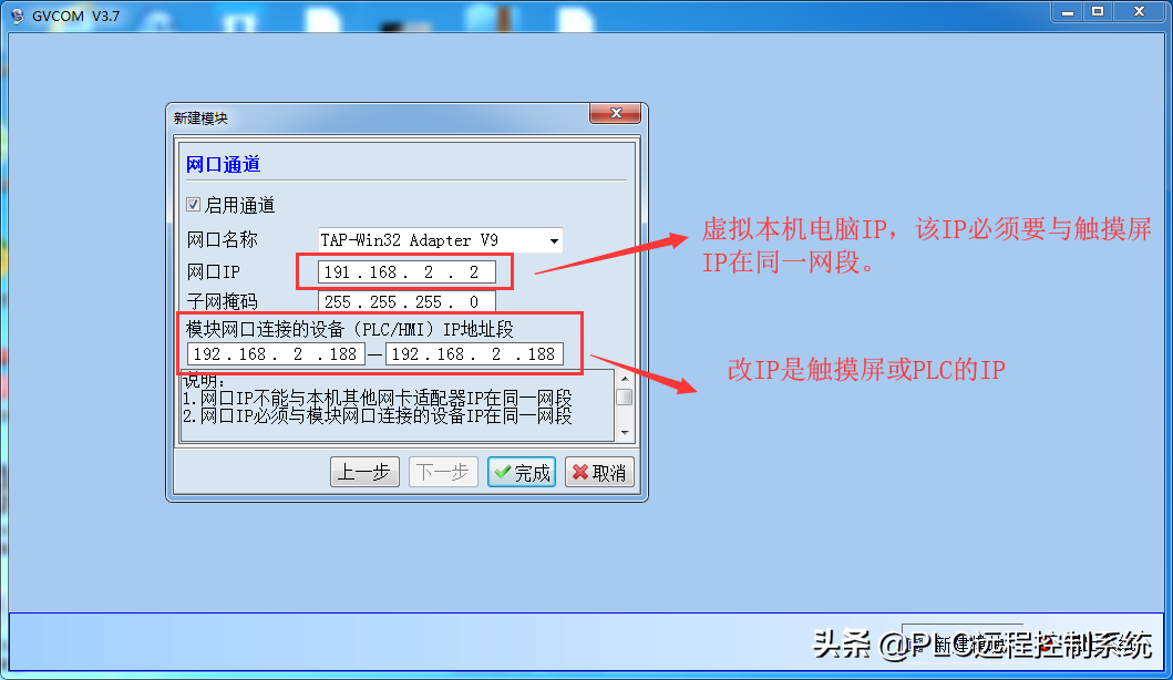 4.远程模块的lan口接到触摸屏的网口上(或同接以交换机上)