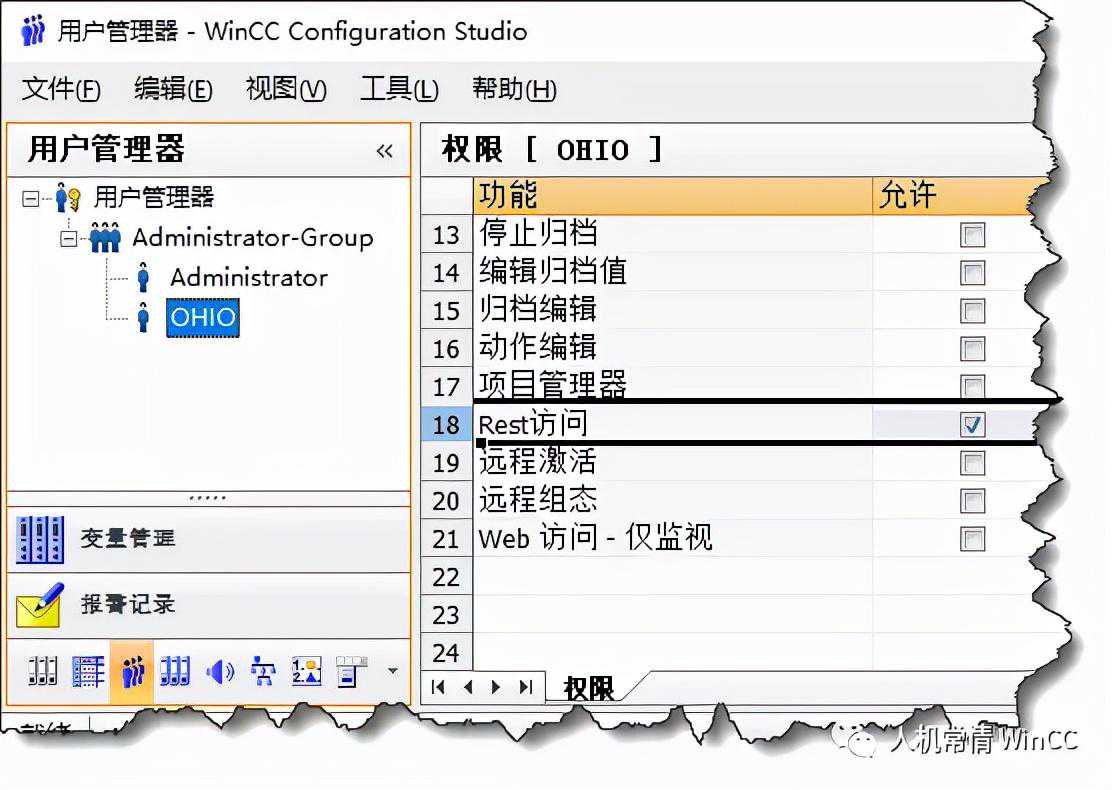 在WinCC变量管理中,设置通过REST接口访问变量的读写权限