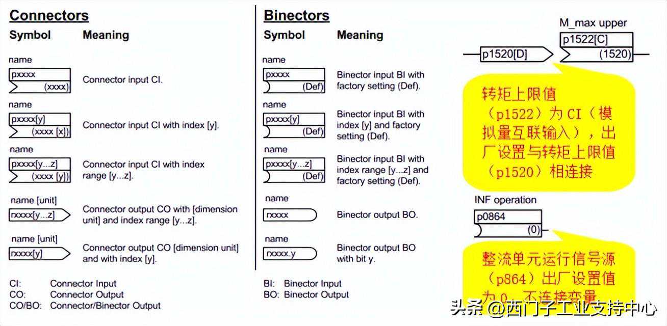 二进制接口,模拟量接口分为BI(二进制互联输入BinectorInput),BO(二进制互联输出BinectorOutput),CI(模拟量互联输入ConnectorInput),CO(模拟量互联输出ConnectorOutput)。