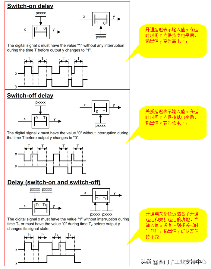 开关延迟符号主要用来对开关量信号的开通与关断进行特定的时间延时,可通过波形图理解相关的逻辑。