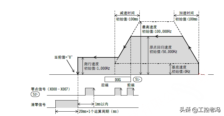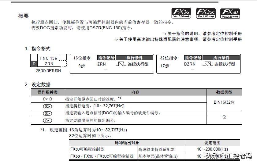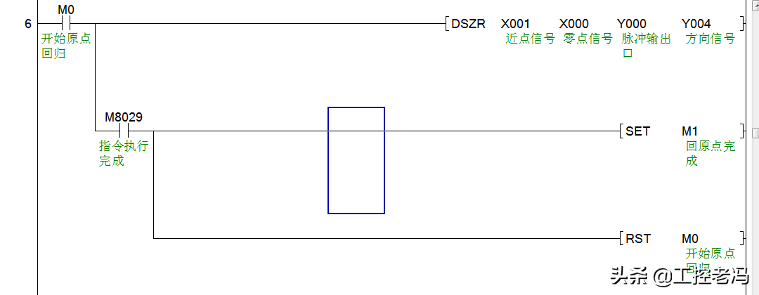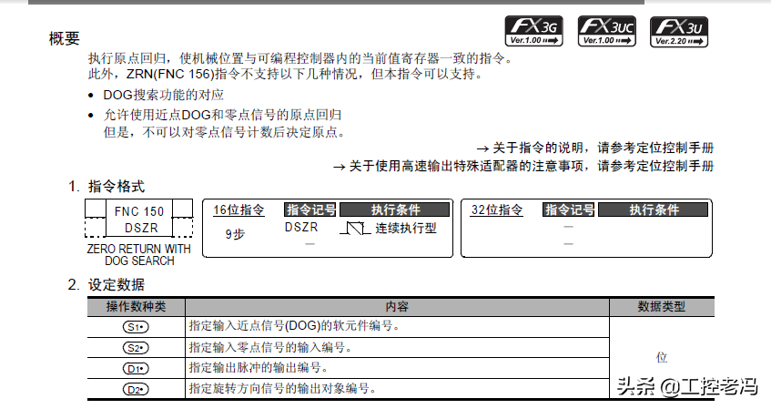 三菱给出了两个原点回归指令,ZRN和DSZR。ZRN为原点回归指令,DSZR为带DOG搜索的原点回归指令。