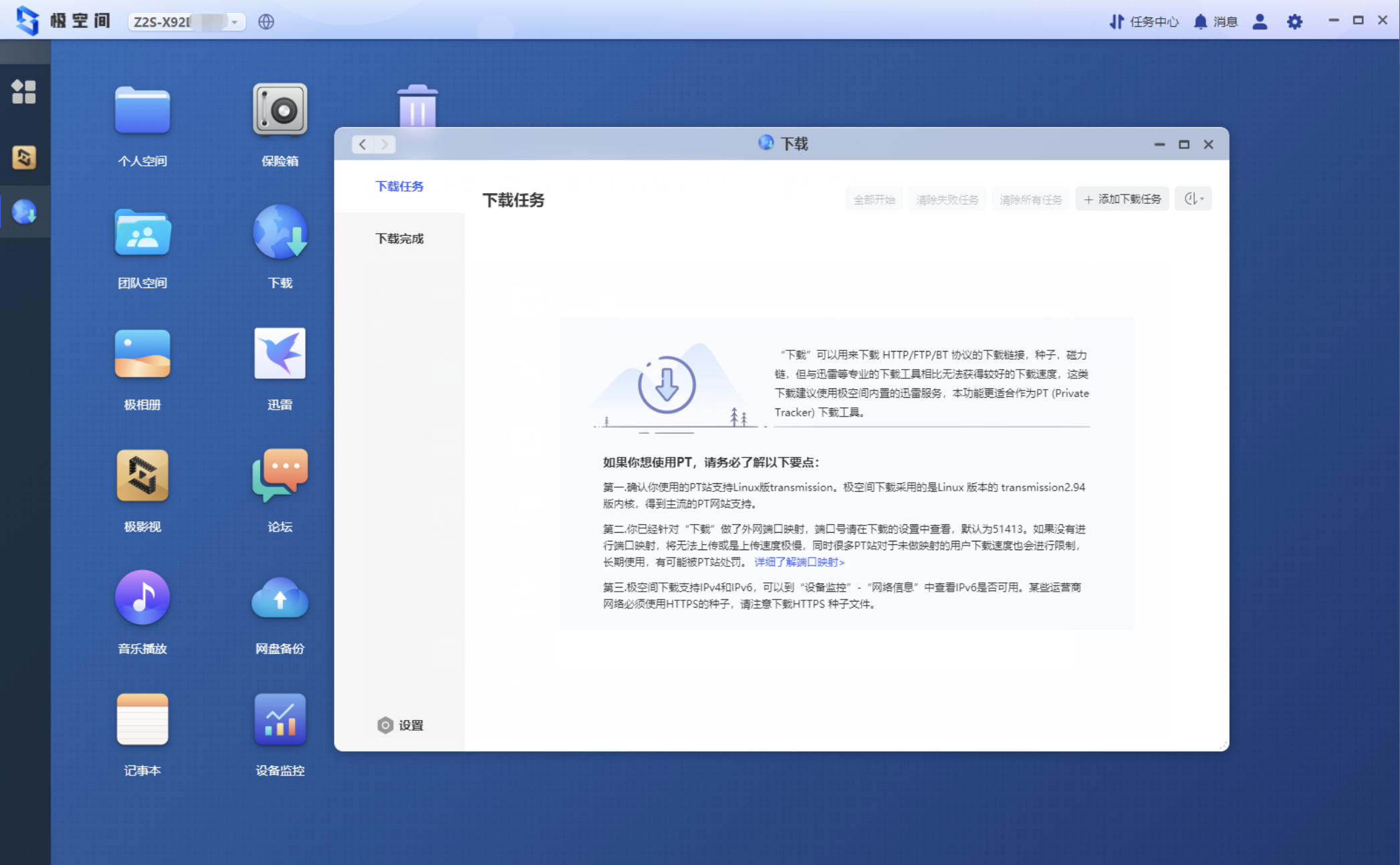 另外极空间内置了第三方迅雷下载,整个下载的速度和操作方面和PC端的使用两者并无太大的差异。