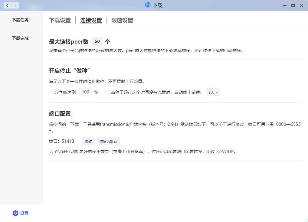 最大支持同时下载100个链接。当然如果不是极端下载用户,不建议对整个下载进行额外的设置和配置。