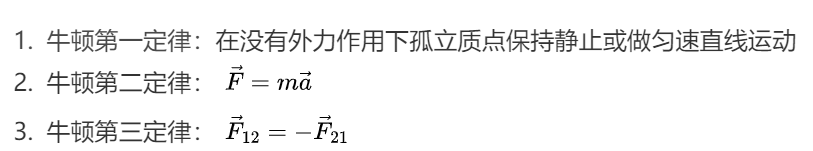 刚体(rigidbody),被定义为形变为0的物体,其上任意两点之间的距离,无论刚体如何运动,都是不变的[3]。在中学物理中,相信同学们都学习过质点的运动学,其由牛顿三定律描述[4]: