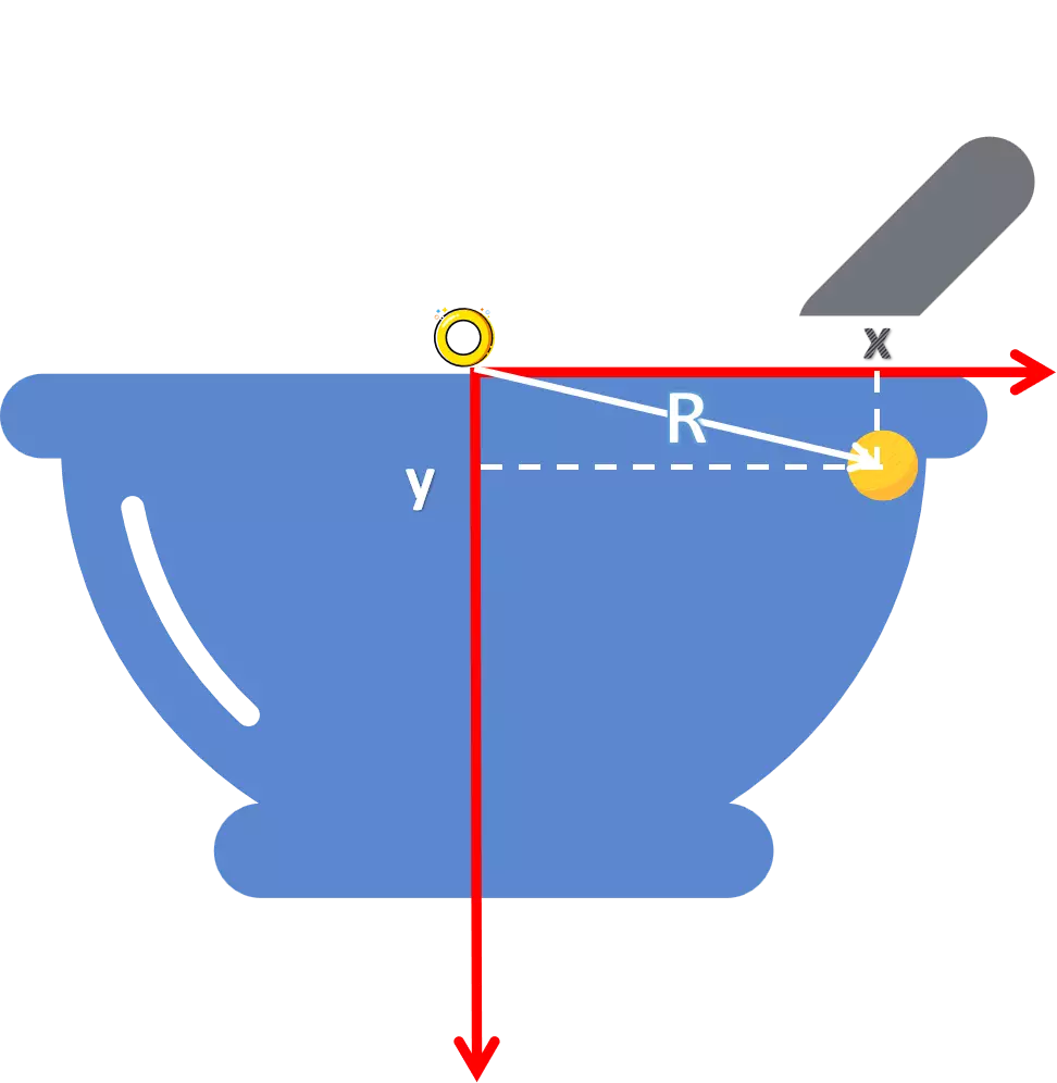 其含义是小球到上图坐标系原点O的距离始终是碗的半径,也就对应着小球被约束在碗壁上这一物理实在。