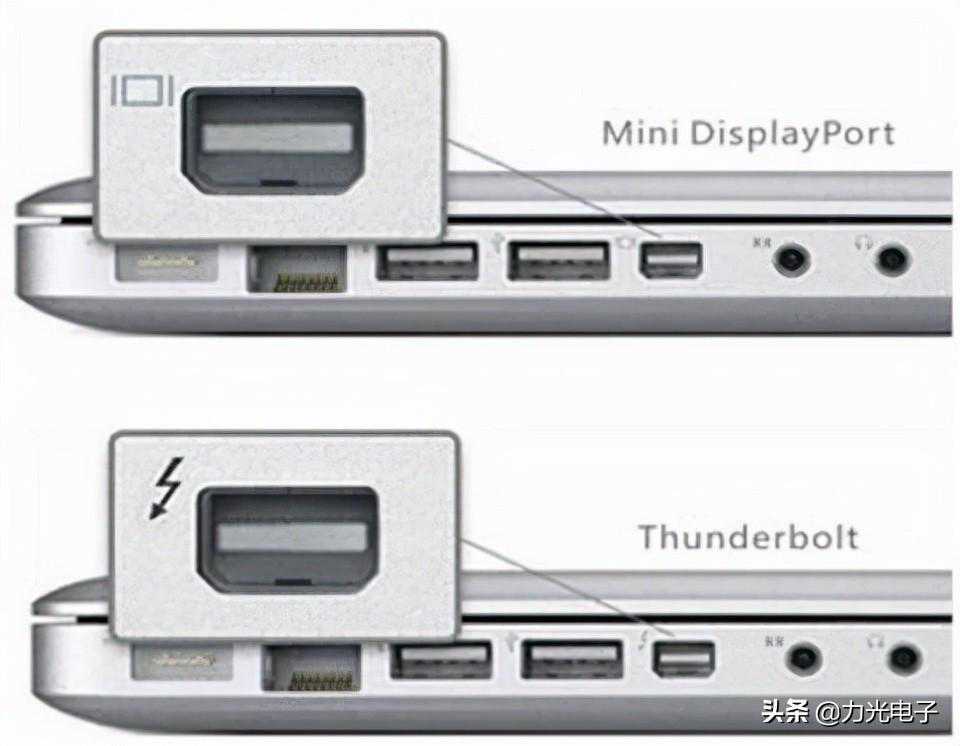 另外,雷电2也采用了和miniDP一样的接口形状,所以好多人总是把别的电脑上miniDP接口,当成老款MacBook的雷电2接口。