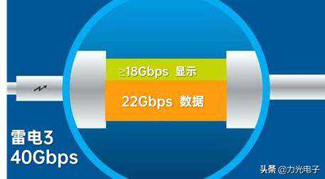 【5.1雷电3的数据传输】刚才说雷电3理论带宽40Gbps,是的8倍速,这个说法也算对也算不对。纯看带宽确实是8倍,但如果算数据带宽,雷电3这40Gbps里,其实划分了仅22Gbps的数据传输上限。