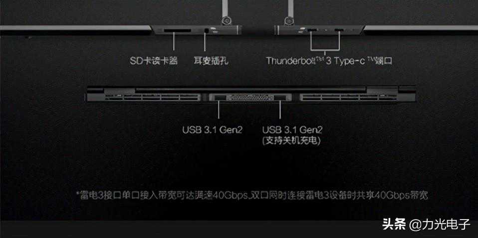 我强调了“1个”,是因为现在还有好多本子出的是2个“半速”。这么说也不太严谨,这类笔记本采用的确实是满速40Gbps雷电3芯片,但是却有两个雷电3接口共用。出现这种情况有的受限于成本,有的是受限于主板和芯片的PCIe通道不够。
