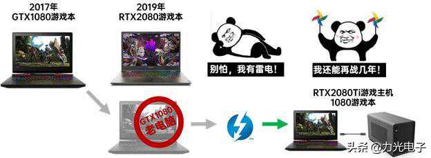 或者是一台带雷电3的游戏本,买到手用了三五年,显卡过时了,插上装有最新显卡的雷电3显卡坞,不用换电脑就可以更新老电脑游戏性能,循环往复,一台游戏本真的可以用十年了。