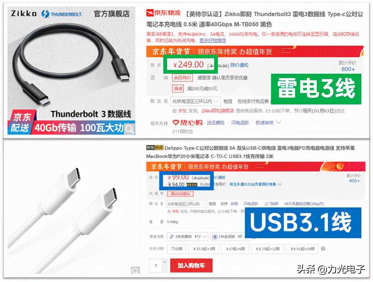 6.【被忽视的Type-C线材】前面提到了多种功能的Type-C口,以及与他有关的设备,但Type-C的线材和配件的性能往往被人们忽视。你是不是觉得,随便找根给手机充电的双头CtoC数据线,把笔记本和显示器一连就可以美滋滋,和显卡坞一连就可以解锁轻薄游戏本?