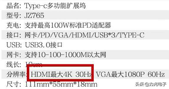 另外,一个5G数据带宽的全功能Type-C确实支持4K@60Hz的显示输出功能,但使用扩展坞/转接头转接出来的如果是那就无能为力了。很多Type-C转USB+HDMI+RJ45的扩展坞都没有注明RJ45的百兆还是千兆,以及HDMI是1.4还是2.0。