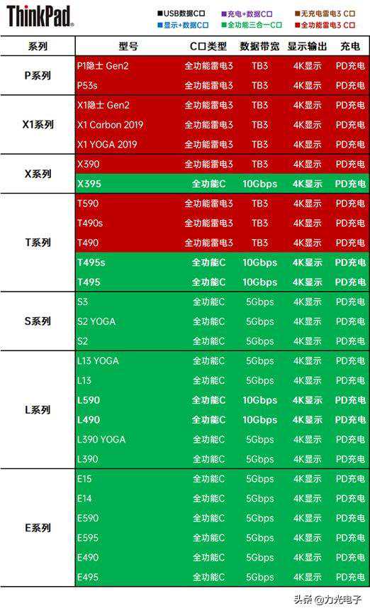 ThinkPad的全系产品几乎都配备了全功能Type-C,他算是传统厂商(含子品牌)中最为激进的,从2018年新品就开始全系搭载全功能Type-C。