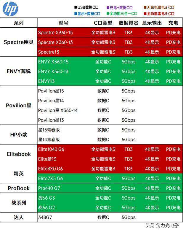 惠普情况和联想类似,主流价位出量的金属全能系列都采用的纯数据Type-C口而非全功能,商用系列动作倒是比较快。