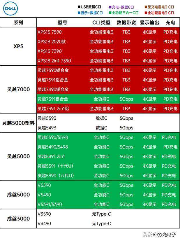 戴尔的全功能Type-C基本覆盖了灵越5000以上的系列,属于传统厂商里步伐比较快了。