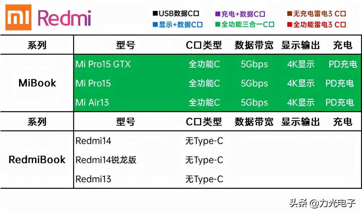 小米也算是比较早开始笔记本上做全功能C的厂商,早在16年初代Air系列就开始推行笔记本的全功能Type-C概念。不过Redmi系列就很神奇了,直接没有C口。