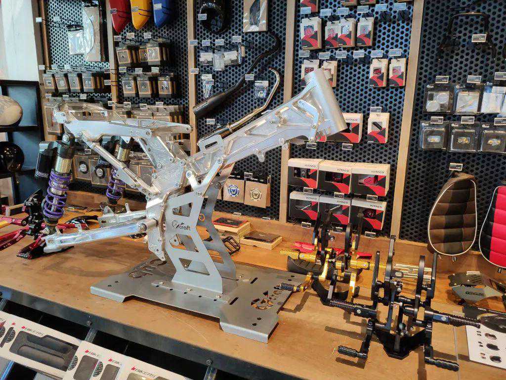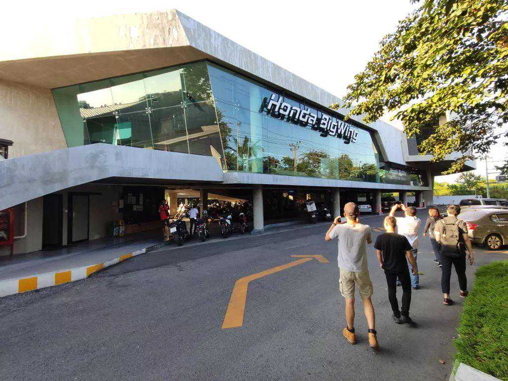 如果赛车并不能完全体现泰国整体的摩托车氛围,那当你走上曼谷的街头,从你面前一辆辆驶过的摩托车一定会让你印象深刻。近年来,泰国的摩托车虽然依旧以小排量弯梁车和踏板车为主,但中大排量的产品销量也越来越好。在泰国本田的销量是最好的,而泰国本田的大排量专卖店叫“BigWing”,我们去的这家店面也确实对得起这个名字。大而全是这家店的特点,不仅有丰富的车型、装备和改装件,店内还有马力机提供测试。