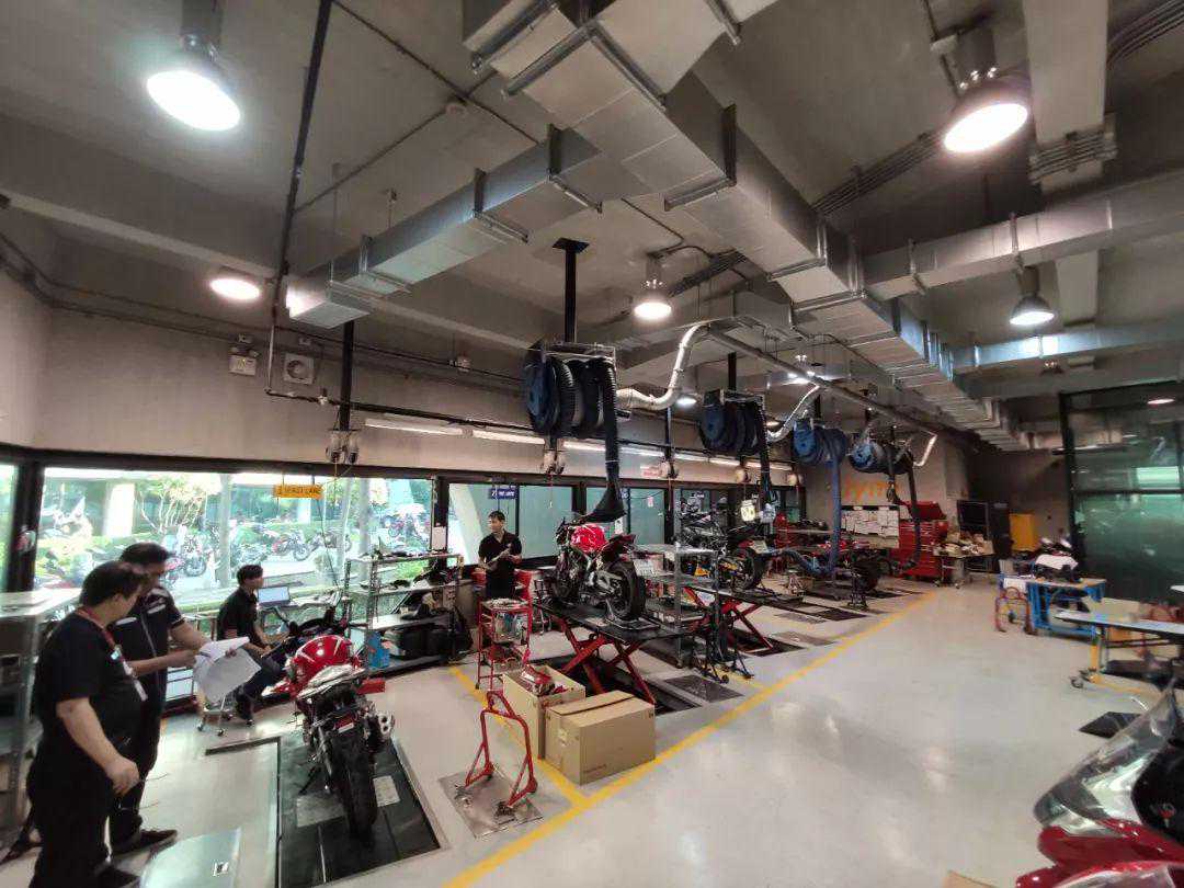 这家店是曼谷最大的本田大排量专卖店,一年能够卖出超过1500台车,一天能修二十台车左右,这里的技师一天平均要修三台车,可见这家店相当繁忙。而像这样的店曼谷就有4家,全泰国共有26家,火热的摩托车氛围也造就了这样高规格的店面。