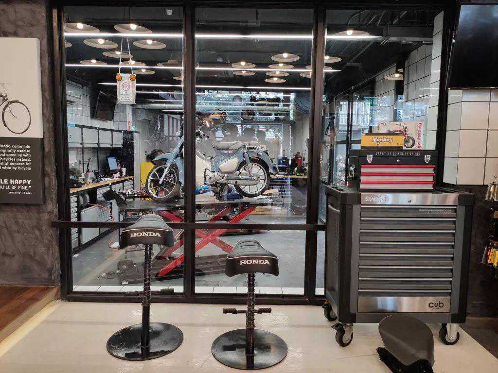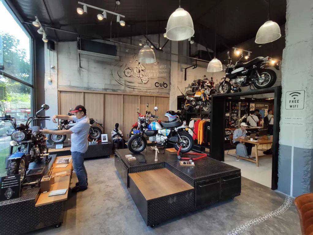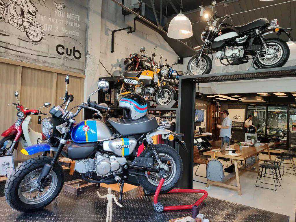 当然,体验完比赛之后,我们也尝试了一下另一种生活方式。此次我们参观了位于曼谷的Cubhouse,这是本田在泰国尝试的一种很有创意的销售型式,表面看是一家独具风格的咖啡店,实际上店内还出售SuperCub125和Monkey125两款车以及对应的改装件,同时店内还有维修车间,提供这两款车的改装件以及保养服务,如果你愿意,甚至可以亲自动手。而在这家店的后院,你能看到很多充满创意的改装作品,甚至包括一辆很多个性的三轮幼兽。