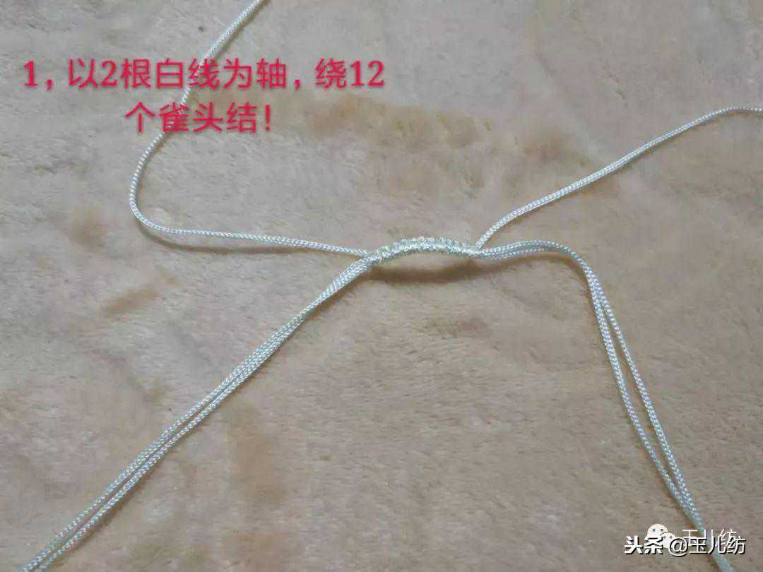 7,分别以第一根白线为绕线,其余3条线为轴线绕反斜卷结。