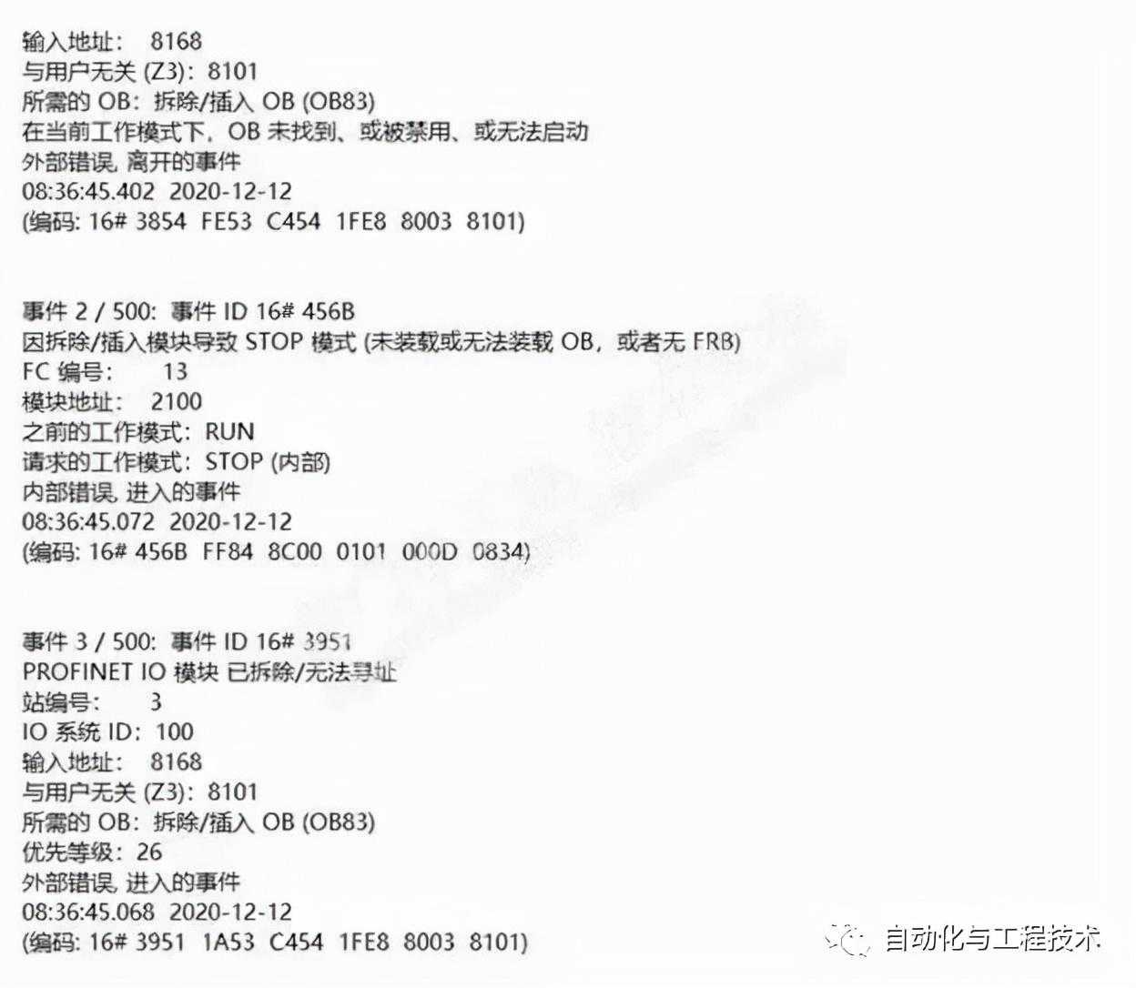 因此,在做项目的时候,尽量保证PLC正常运行时不要报系统错误,虽然有相应的组织块保证CPU不至于进入STOP模式,但是会给判断其他故障带来难度。关于Profibus网络故障分析实例可以参考以前分享过的一篇文章《为了一个自控项目,我差点告老还乡》!
