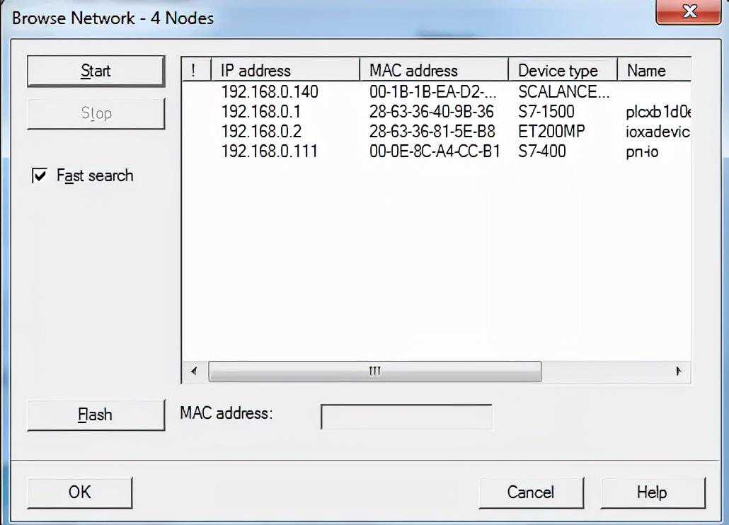 (2)扫描到的PROFINETIO设备的MAC地址与设备名称对应关系是否完全正确,如果不一致,那么可能的原因是设备名称错误的分配给了其它设备。