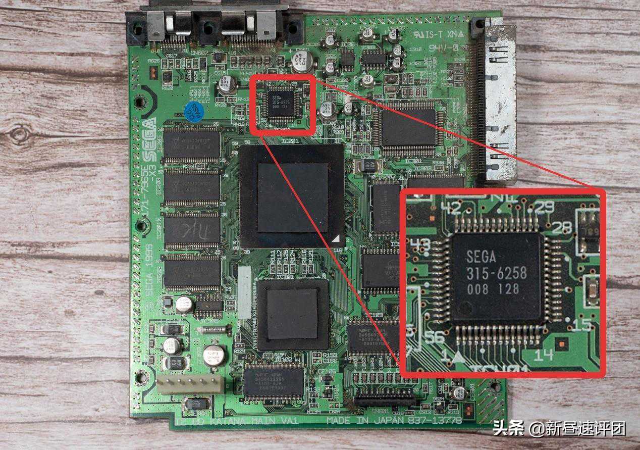 这一块Sega315-6232在我的手头这一块主板上没有丝印,它是来自于雅马哈的AICA超级智能声音处理器,为什么说是超级,因为能输出64通道音频,并且具有多种声效可以脱离CPU独立处理。90年代的世嘉一直很注重声音这一块,这一点与不断削弱声音效果的同期索尼有差别。