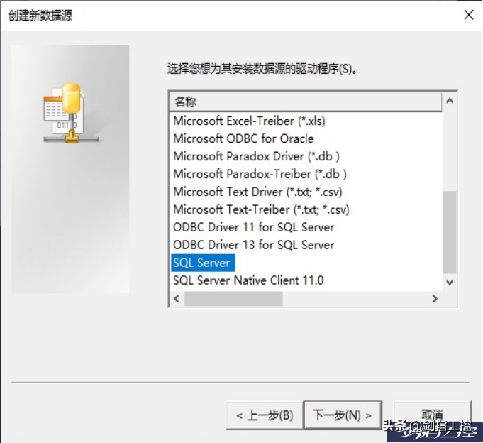 10、建立ODBC数据源“②”(图9),选择数据源(图10);