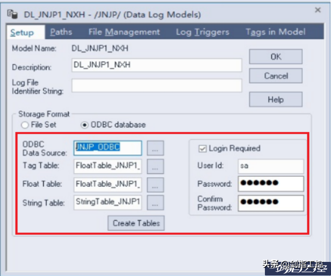 9、打开DL_JNJP1_NXH以后,在Setup选项卡,选择存储格式“①”为ODBC数据库(图9);