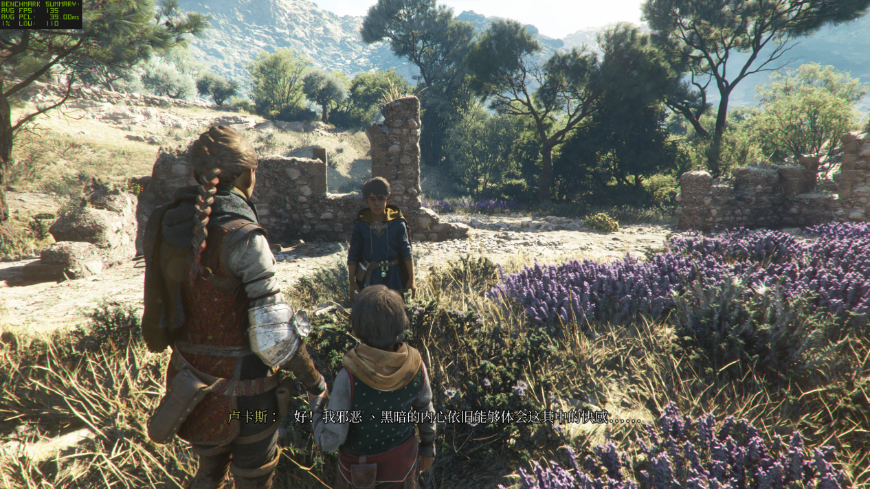 在另一款画质爆炸的次世代3A大作《瘟疫传说:安魂曲》中,优化相对来说就要好不少了。即便不开启任何AI工具,也可以满足流畅游玩,而在DLSS3加持后更是可以帧数翻倍轻松畅玩。
