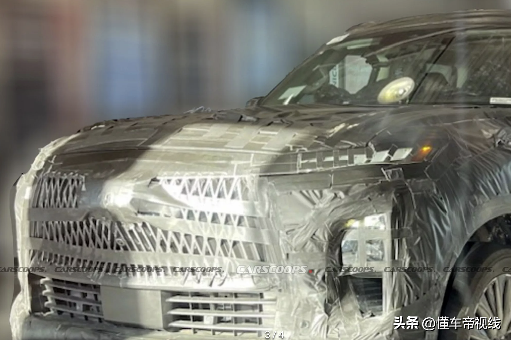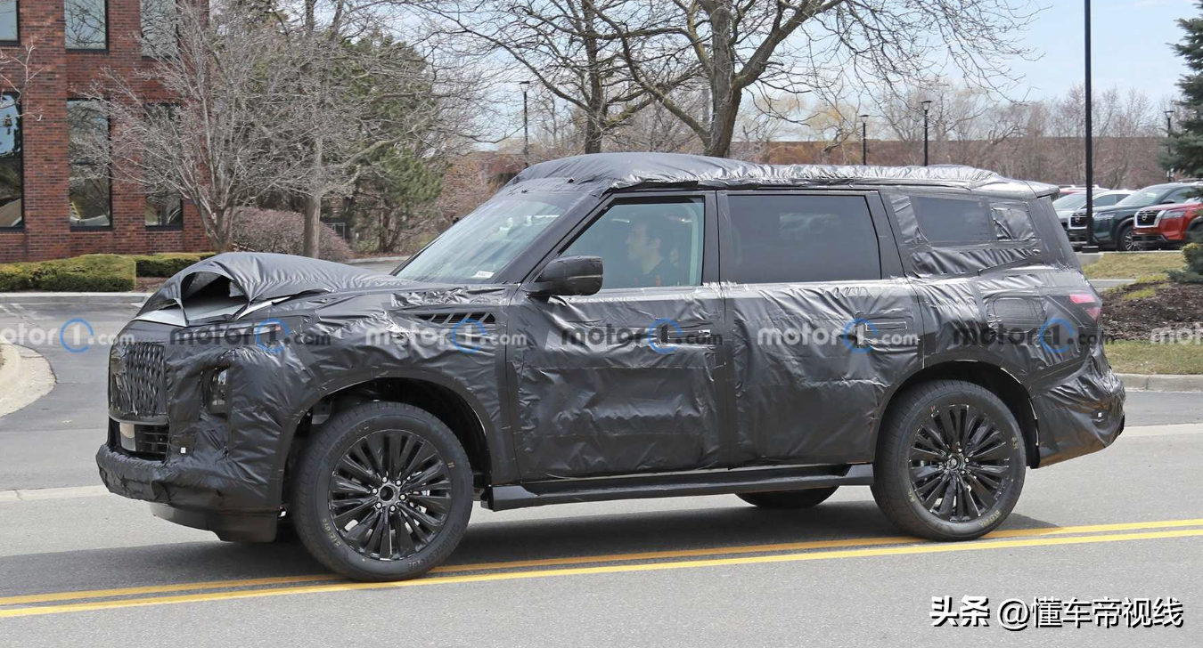 此前,全新英菲尼迪QX80谍照也已经曝光。具体来看,全新英菲尼迪QX80对前脸进行重新设计,采用大尺寸梯形风格的进气格栅,内部为菱形网格结构。同时,设计有分体式大灯组,并且前保险杠两侧设计有进风口。
