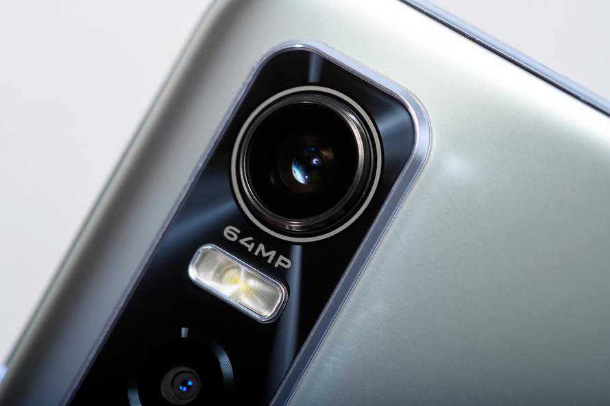在屏幕顶端是一个3200万像素的前置摄像头,背面摄像头由6400万像素主摄、800万像素超广角微距镜头以及200万像素虚化镜头组成,三者一字排列,当中嵌入有一个LED补光灯。