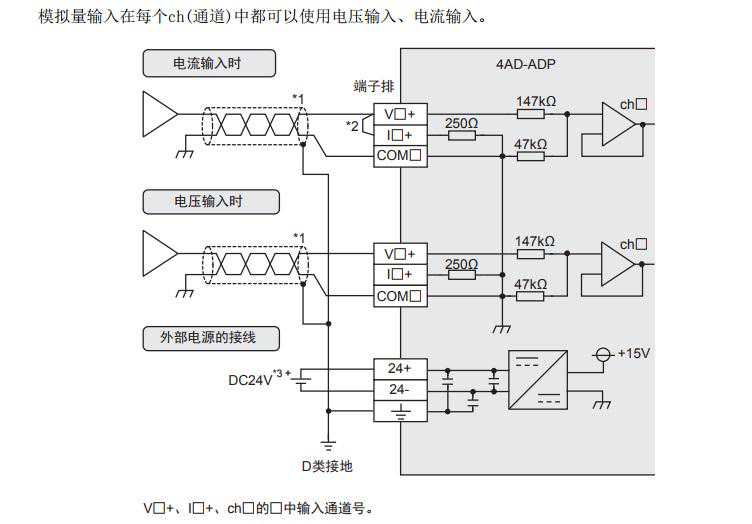 *2.电流输入时,请务必将「V□+」端子和「I□+」端子(□:通道号)短接。