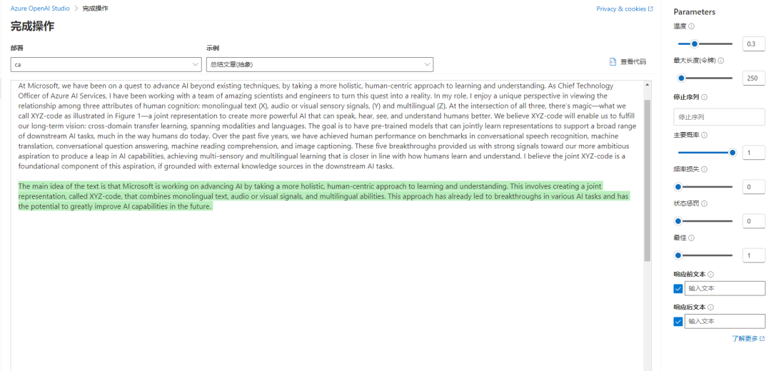 虽然这些接口都是连接到AzureOpenAI的,但是使用的是不同类型的模型,对应的使用场景也不一样,相关接口的说明如下: