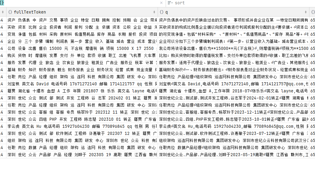 本地解析文档后,会进行分段,如右边的q列所示。