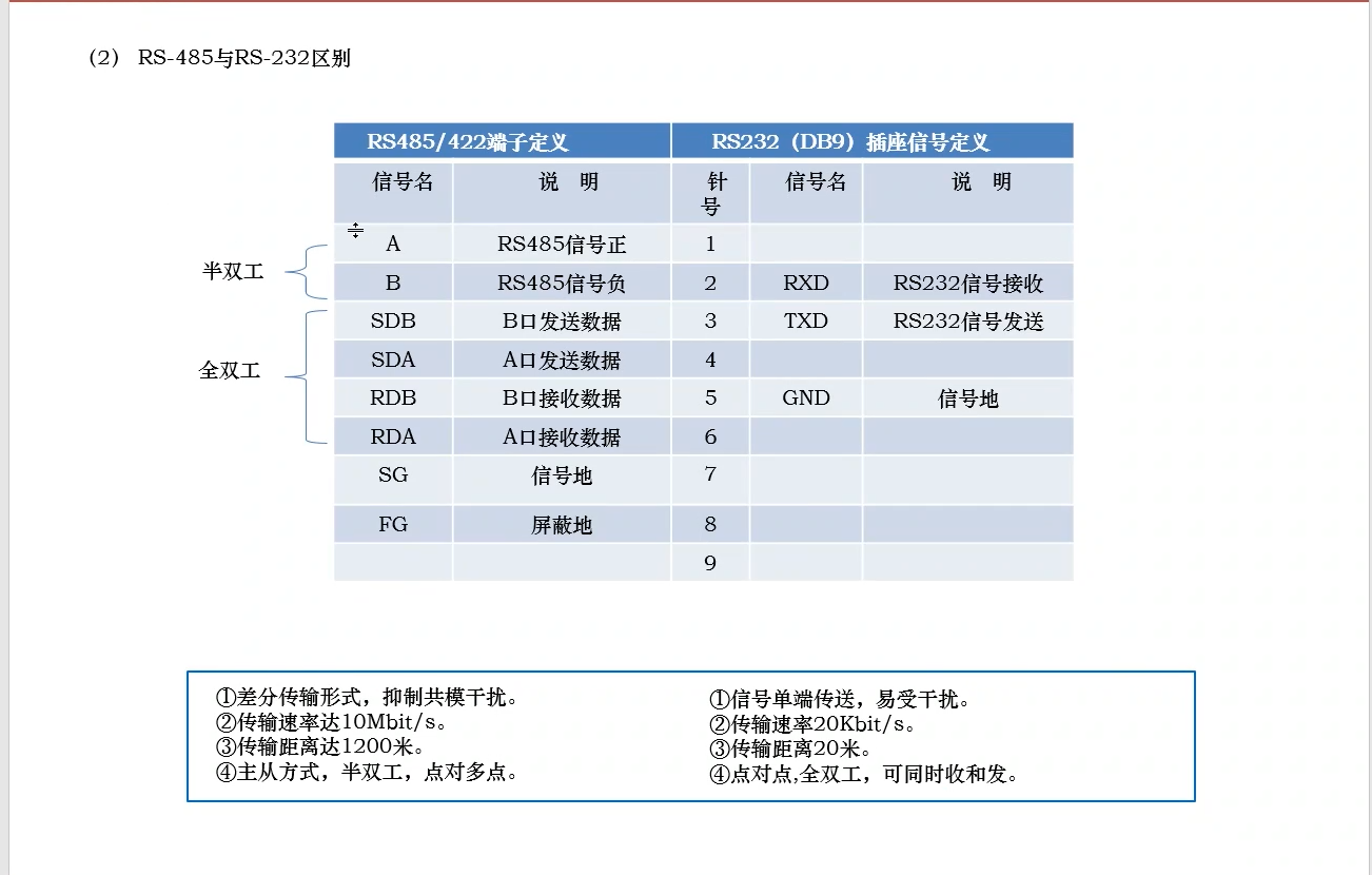 1.)RS-485与RS-232的区别如下图所示: