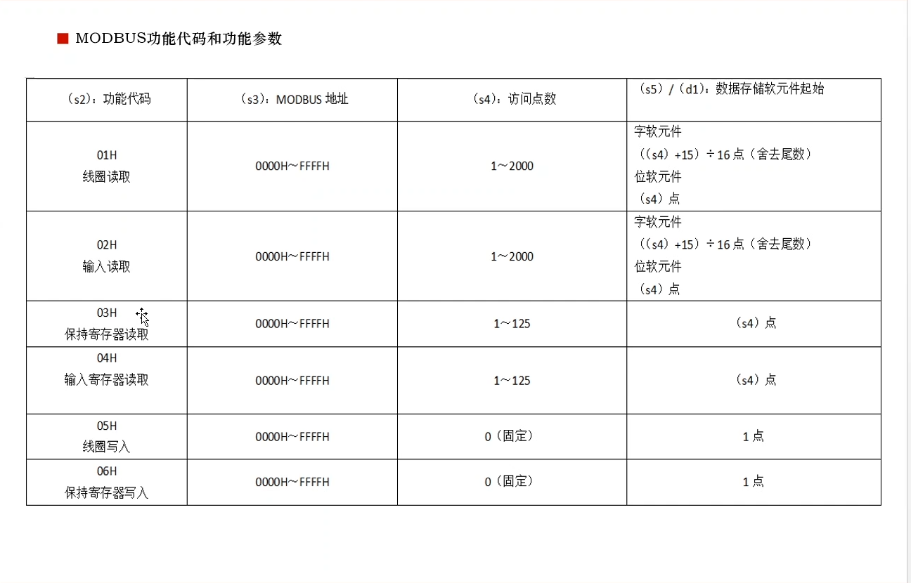 3.)三菱PLC的Modbus功能码解析如下图所示: