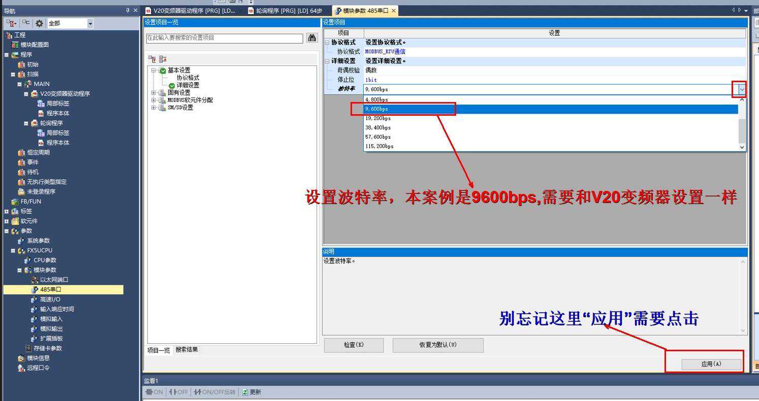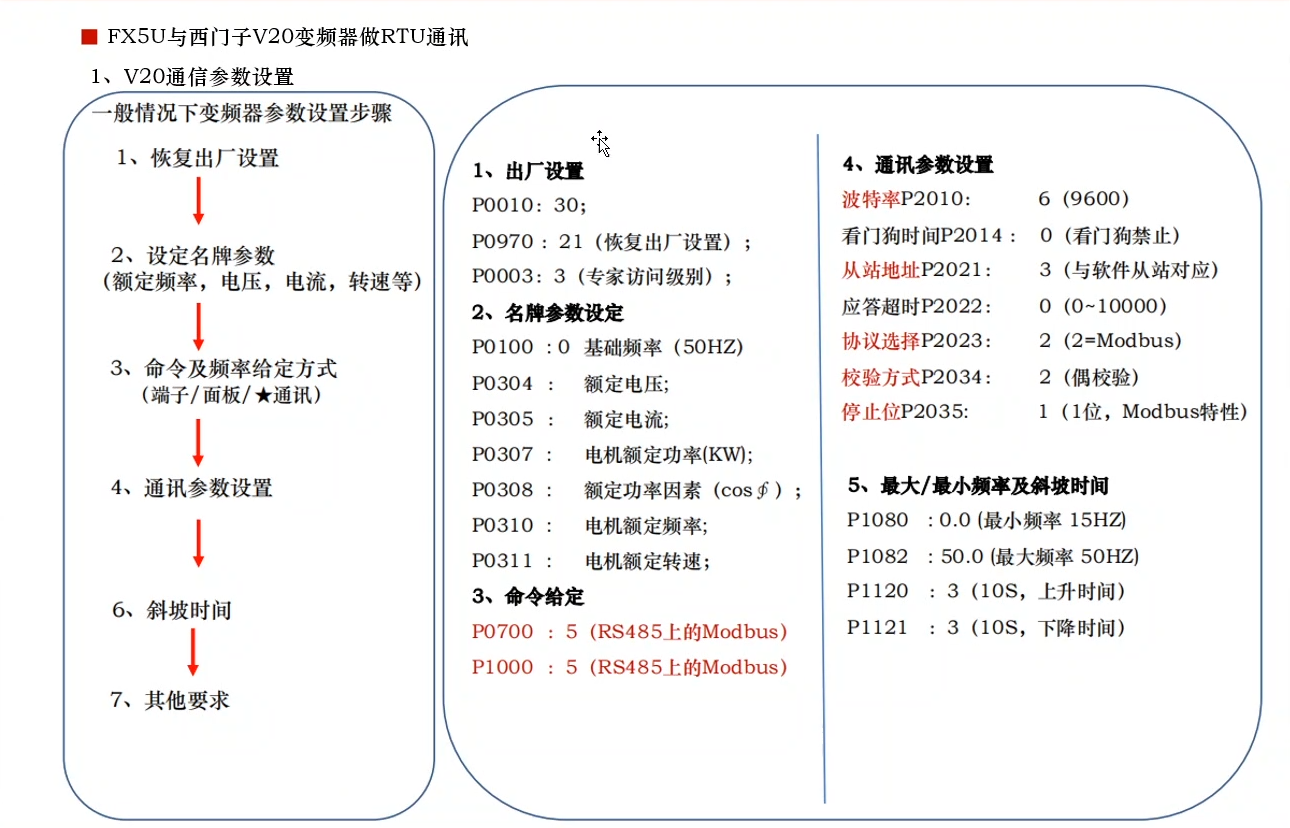 以上我们就简单的介绍了三菱FX5和西门子V20变频器modbusRTU通讯所注意的事项等,对想学习三菱PLC和变频器通讯的朋友多一个参考,由于时间关系和自己水平限制,文章中难免有介绍的不完善或者错误的地方,望广大大神多多指导,力争文章内容更完善,感谢大家的观看!