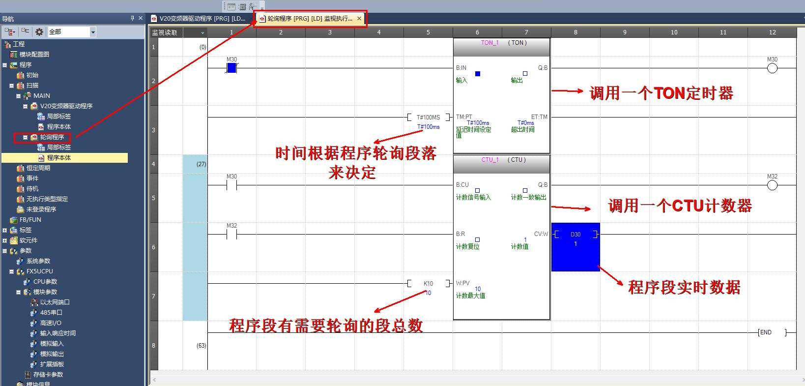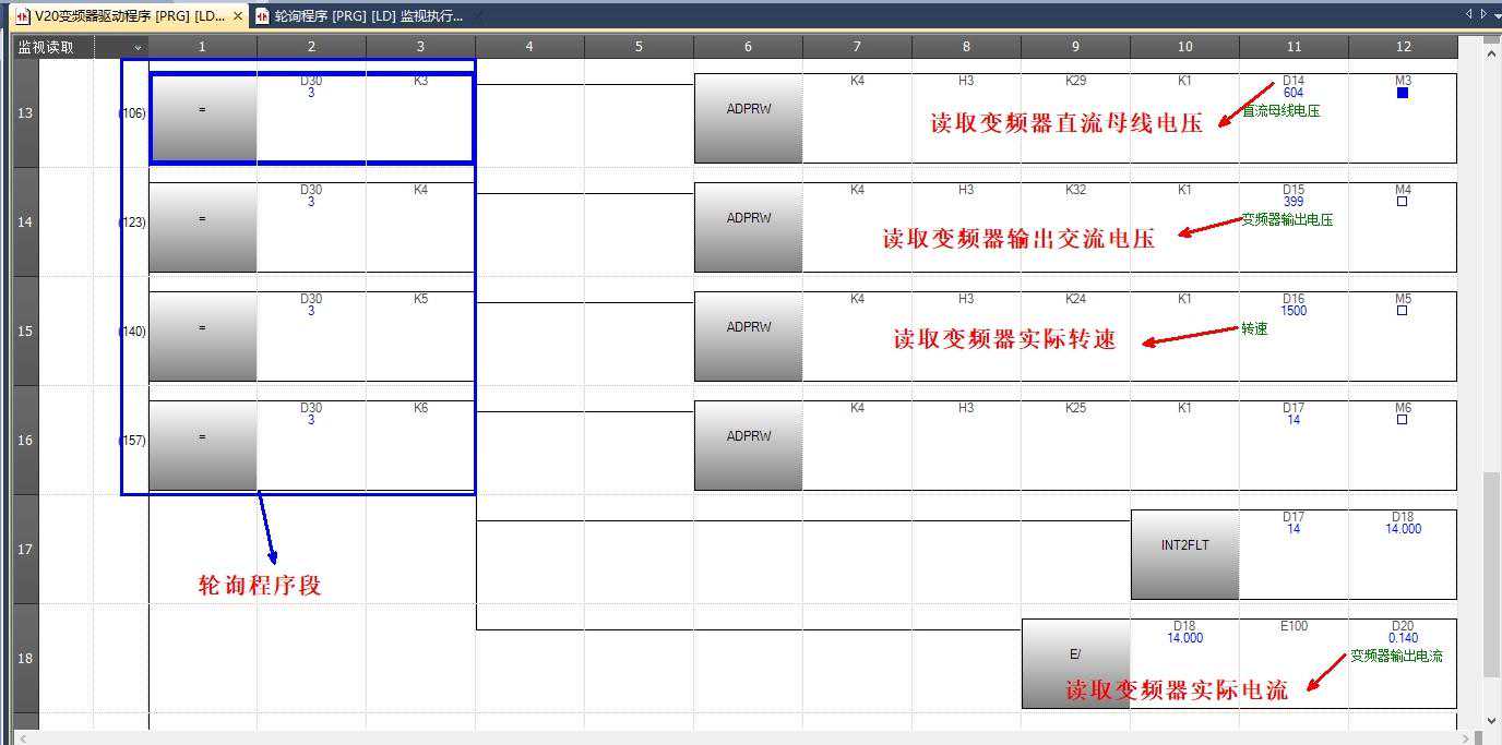 2.)接着写变频器轮询程序,因为读了几个参数组,这就有必要用到数据轮询:
