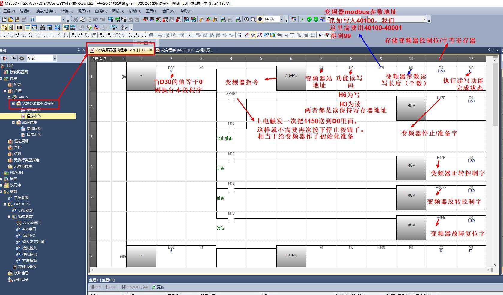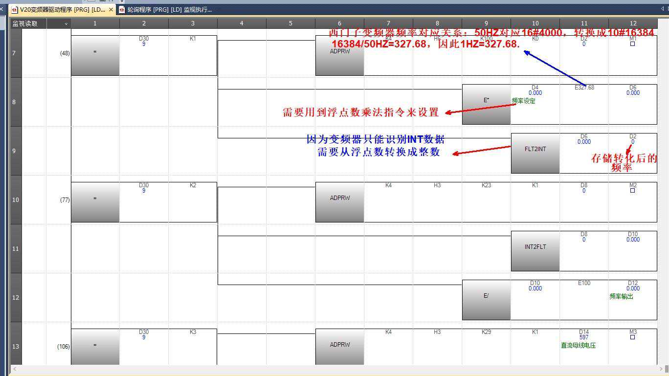 3.)继续写驱动V20变频器程序: