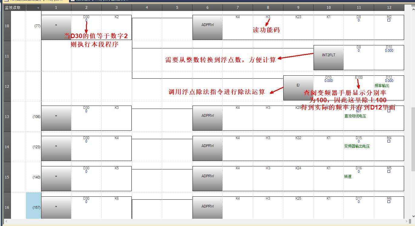 2.)三菱变频器专用指令ADPRW的解析: